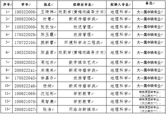 备注:地理科学专业大二转大一3人未占用大一集中转专业指标。