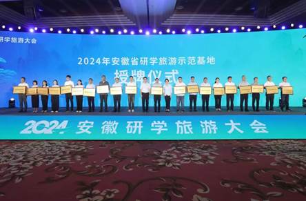 8月27日,安徽省文化和旅游厅授予公司安徽省研学旅游示范基地称号。