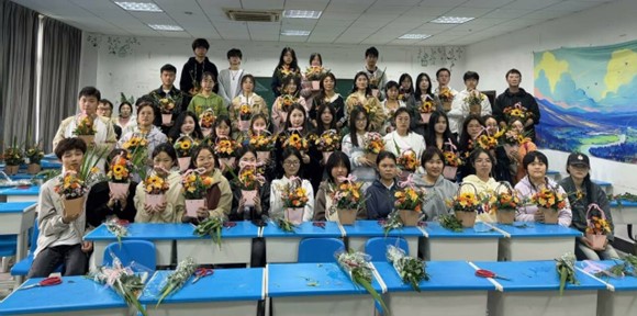 “从插花前的准备工作到正式开始插花,每个环节都很有意义。”完成插花后,地理科学专业2024级1班陶文倩笑着分享。“将花朵控制在一个较为合适的高度是插花过程中最具挑战性的事。”她直言,在数次的修剪、调整后,花束才制作完成,这极大地锻炼了自己的耐心与动手能力。
