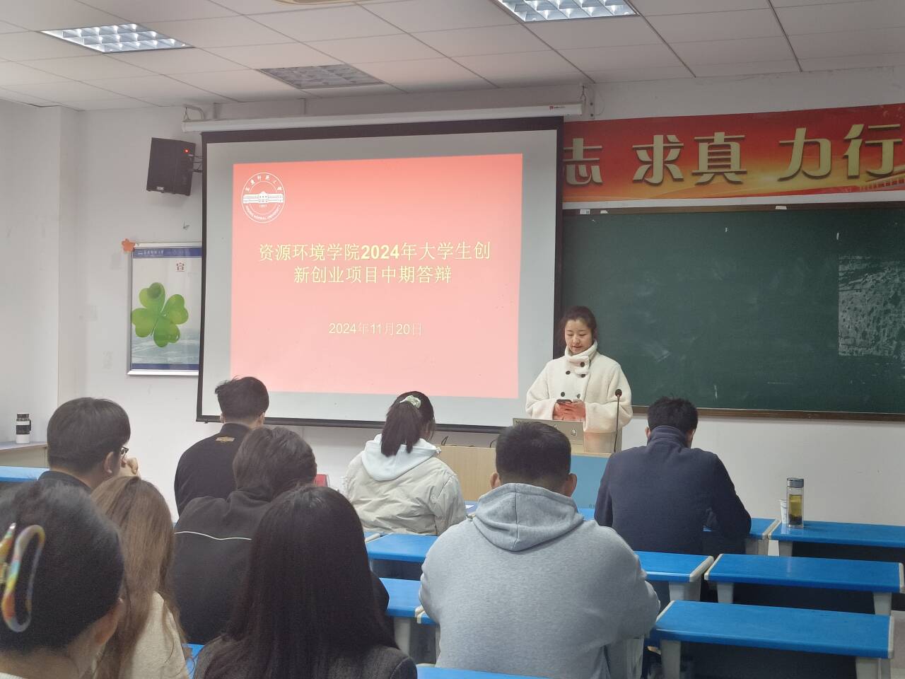 “新污染物检测领航者——模块化水凝胶基抗生素掌上检测系统的开发与应用”项目及“一种创新的悬挂管道种植黄瓜方法”等15个项目团队依次上台汇报,各团队通过PPT展示详细介绍了项目背景、研究目的、研究方法、进展情况、阶段性成果以及下一步工作计划。汇报结束后,评委老师逐一进行点评和指导。