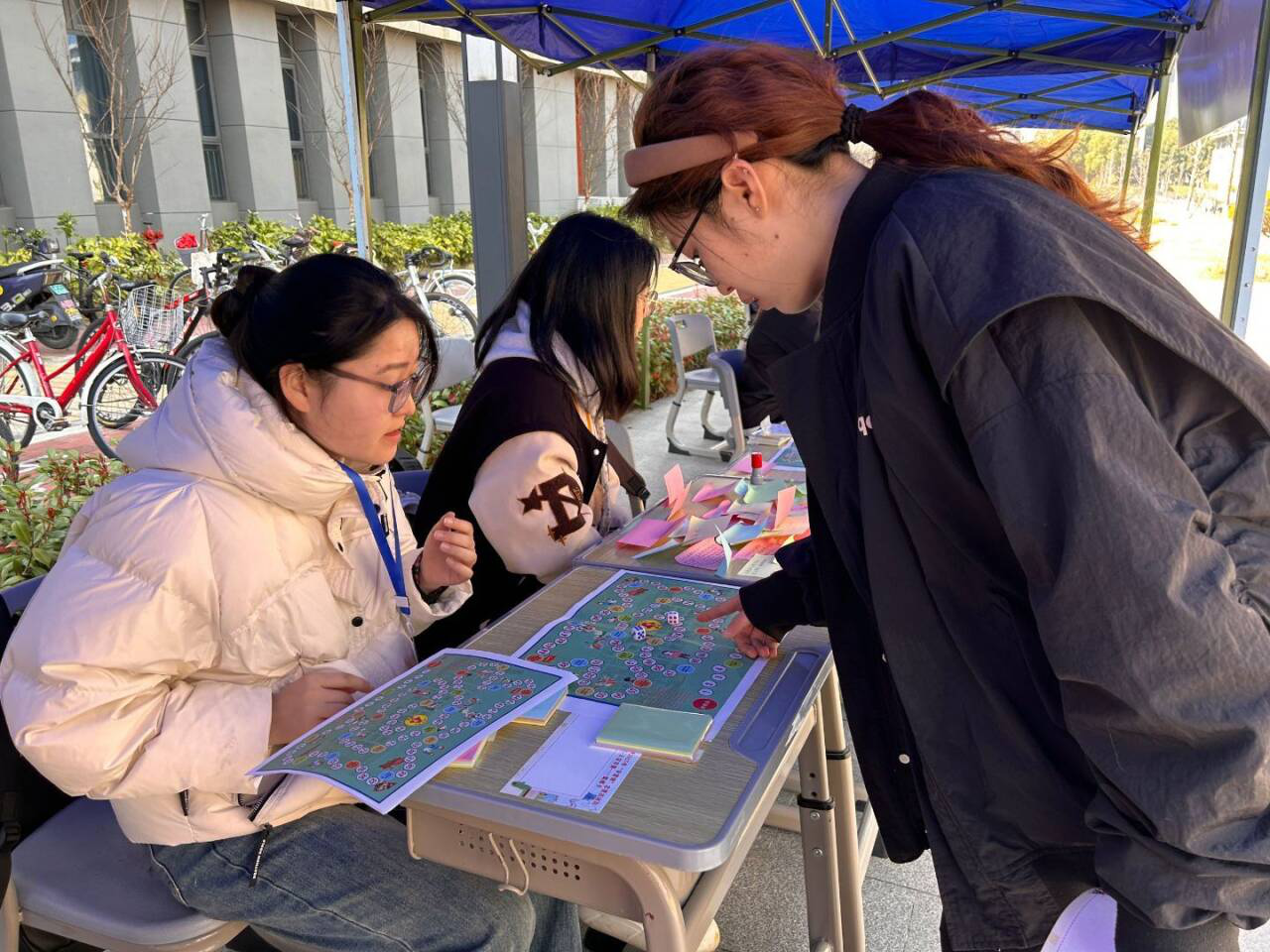 活动当天一早,红太阳志愿者服务团的部员便着手场地准备工作,从展棚搭建到道具摆放,从标语悬挂到区域划分,每个环节都凝聚着团队的用心。活动现场吸引众多师生驻足,他们纷纷询问活动背景,了解活动流程,现场参与氛围浓厚。本次活动包括两个环节,参与活动的同学可以选择写便签或者进行“雷锋”大富翁游戏。在便签书写环节,员工们可以写下他们对雷锋精神的感想,或是他们曾遇到的好人好事,亦或是他们了解到的雷锋名言。员工们纷纷写下自己心中的雷锋形象。有人说他是“人们的榜样”,有人说他是“人民的好战士”……一言一语无不体现同学们对雷锋同志的敬佩。也有同学写下雷锋的名言警句“我愿永远做一个螺丝钉”“人的生命是有限的,可是,为人民服务是无限的,我要把有限的生命,投入到无限的为人民服务之中去”……每句话都催人奋进,使人鼓舞。