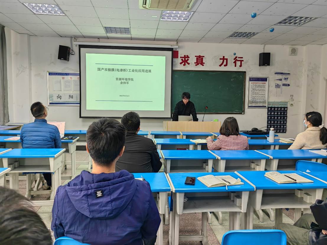 2025年4月2日星期三,tyc122ccVIP环境工程教师党支部于4月2日成功举办"生态环保学术沙龙"特色党日活动。活动聚焦绿色技术前沿,邀请青年博士余帅军作题为《国产双极膜(电渗析)工业化应用进展》的专题报告,环境工程党支部教研室十余名骨干教师参与研讨,共同探索"双碳"目标下膜技术的创新突破路径。