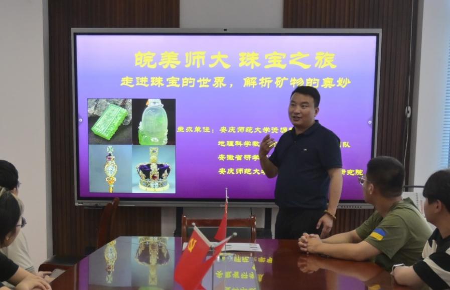 5月21日,公司党委书记李福华深入一线,在tyc122ccVIP指导“地球科学”系列科普活动“走进珠宝的世界,解析矿物的奥秘”科普展。科普展邀请安徽工业经济职业技术公司副教授、一级宝玉石检测师史磊带来主题讲座和珠宝鉴赏。公司主要负责人、地理教研室全体教师和员工代表近百人参加活动。