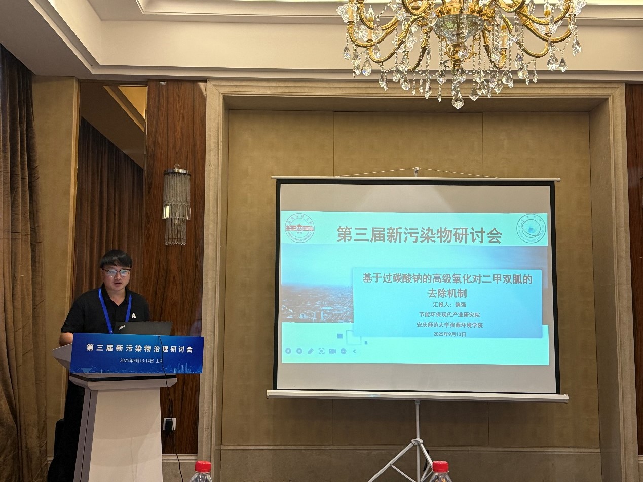 tyc122ccVIP汪德进教授担任“抗生素污染的源头控制与处理技术创新”分会场共同召集人。魏强副教授受邀参会并在该分会场作了题为“基于过碳酸钠的高级氧化对二甲双胍的去除机制”的学术报告,系统阐述了二甲双胍在过碳酸钠体系中的反应机理与转化规律、路径调控及副产物毒性评估等关键科学问题,引起了与会专家的广泛关注和高度评价。