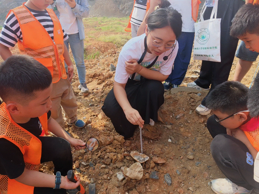 次日清晨,研学团队来到集贤关一处岩层断层地质剖面。中国地质大学的王圆博士为学员们揭开了岩层错动痕迹的神秘面纱,这些痕迹是破解古地震规律的关键密码。学员们通过锤击岩石观察解理面,直观对比了不同岩性的抗风化能力,将课本上的抽象概念转化为手中的触感,深化了对地质学的理解。