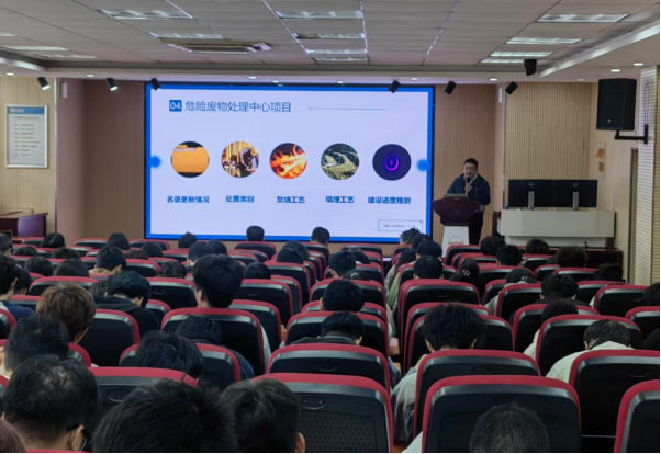 此外,本次实践教学活动还安排了两场高水平专题报告。第一场报告以“如何利用三维模型进行环保设备的加工和装配”为主题,主讲人结合案例详细介绍了三维建模技术在环保设备设计、零部件加工精度控制、设备装配模拟等方面的应用,让员工了解到数字化技术对提升环保设备性能与生产效率的重要作用;第二场报告围绕“生活垃圾固废的处理现状与工艺技术”展开,系统分析了当前我国生活垃圾产生特点、分类收集现状,以及填埋、焚烧、堆肥等主流处理工艺的技术原理、适用条件与环境影响,同时展望了固废资源化利用的行业发展趋势。两场报告内容贴合行业前沿,有效拓宽了员工的专业视野,为后续专业学习与职业规划提供了方向指引。