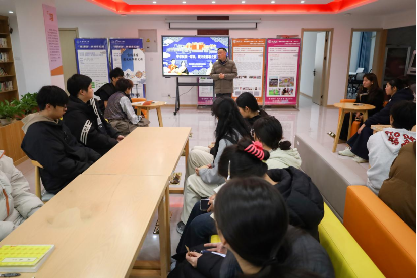 在“走进雪域”环节中,活动讲解人、地理科学2024(2)班的德吉从藏族自称“博巴”讲起,“‘藏’其实是汉语称谓,我们一般自称‘番’,在藏语里发音为‘博巴’。‘巴’、‘哇’在藏语里是‘人’的意思……”她细致区分了“卫巴”“康巴”“安多哇”等不同地域称谓,并向大家展示了世界上最长的英雄史诗《格萨尔王传》等文学瑰宝,让在场同学对雪域高原的深厚文明有了直观而立体的认识。