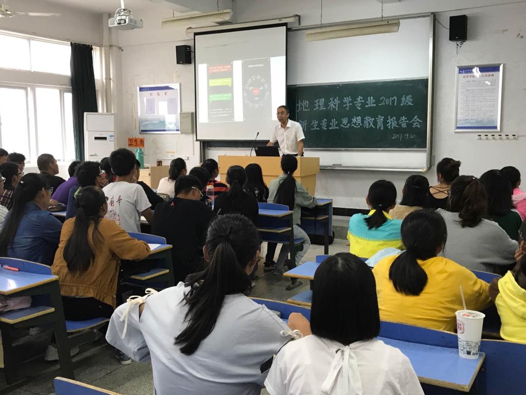 9月21日下午,tyc122ccVIP在文溯楼303教室为2017级地理科学专业新生举行了专业思想教育报告会。教授、博士郭永昌老师担任主讲。