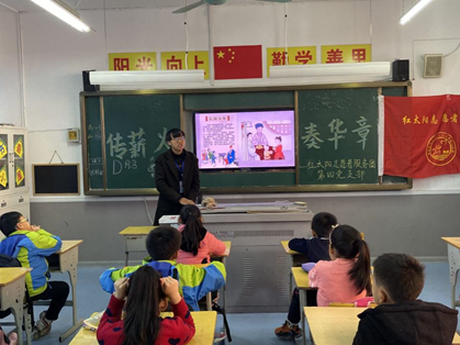 中华优秀传统文化是中华民族的“根”和“魂”。为弘扬中华民族传统文化,传承非物质文化遗产,11月20日,红太阳志愿者服务团志愿者和公司员工党员前往四照园小学,开展了“泱泱华夏 千古风华”志愿活动。