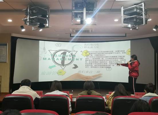 各班级借助制作精美的PPT展示,详细解说了LOGO和吉祥物的设计理念与图标寓意,并在中场时向大家展示了本班的宣传视频,充分展现了公司学子的创新创造能力,传达了积极向上的班级精神,同学们的独特风采展露无遗。获最佳创意奖的旅游管理2019级2班讲解员在比赛时说:“我们班的LOGO契合‘创新风采,勾勒青春’的主题,同时勉励我们要微笑待人,笑对人生。”环境工程2019级3班陆宇表示:“我们班的吉祥物是熊猫抱地球,号召我们要爱护环境,拥抱自然。”