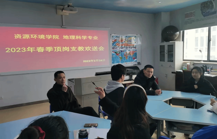 2023年2月24日下午,tyc122ccVIP春季中学地理顶岗支教欢送会于F306教室举办。参与会议的有本次顶岗员工8人,公司副经理金宝石及顶岗支教的负责老师刘峰出席了本次会议。