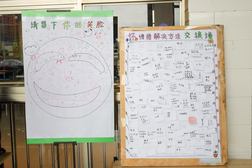 筹划活动内容、收集员工意见、沟通活动场地……地理科学专业2022(3)班的吴丹介绍,活动从雏形到最终展现,她和团队成员历时半余月。“本次活动由‘留下你的笑脸’和‘坏情绪解决方法交换墙’两部分组成,员工们可将笑脸画在笑容墙上,同时也能将自身调节情绪的解忧方法写下粘贴在烦恼交换墙上。”介绍完活动流程,在场员工便开始了自己的“创作”。