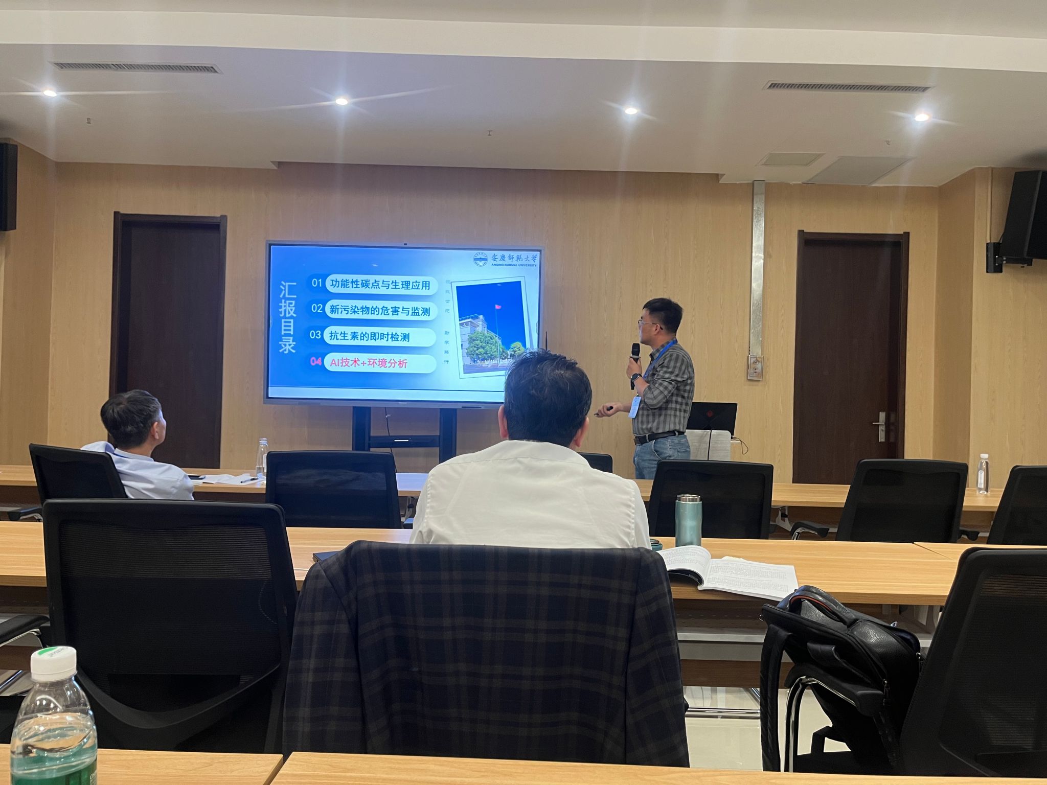 报告中,汪宜博士系统介绍了其团队在碳点基纳米材料领域的前沿探索。基于前期在碳点可控合成与发光机理方面的研究成果,针对新污染物的理化性质与光学特征,通过精准设计碳点的表面官能团、电子结构和光学性能,赋予碳点针对特定污染物的高灵敏度识别能力;针对环境检测领域应用需求,团队开发出基于功能化碳点的便携式荧光传感平台,实现自然水体和生理样本中抗生素等新污染物的痕量检测。此外,汪宜博士还展望与人工智能交叉融合的研究规划,提出利用机器学习建立“体系设计-性能预测-实验验证-环境应用”的闭环研发体系,为新型环境检测材料的定向开发提供新思路。