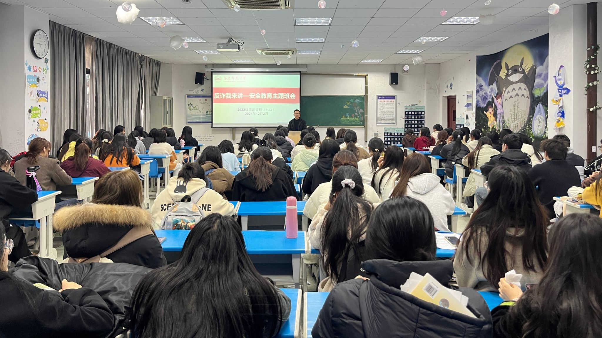 12月2日2023级旅游管理(对口)班级召开“反诈我来讲——安全教育”主题班会,会议由辅导员訾纪辉主持,班级全体同学参加。