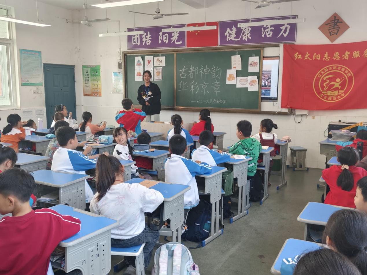 北京,一座承载着三千多年历史的古都,它犹如一颗璀璨的明珠屹立在中华大地上。它是中国政治中心、文化之都,是科技创新的前沿阵地,也是国际交往的重要窗口。它以自身独特的魅力,吸引着五湖四海的人为之驻足。为让同学们熟悉这座兼具深厚历史与现代繁华的都市,tyc122ccVIP红太阳志愿者服务团于11月13日联合十里中心小学开展“古都神韵,华彩京章”主题活动。