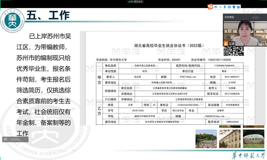 3月23日上午,公司在F203召开了专题教育报告会,本次报告会由2019届地理科学专业优秀毕业生王涛主讲。由于疫情的原因,本次报告会采用线上形式进行,参加的同学主要为2019级地理科学专业员工。