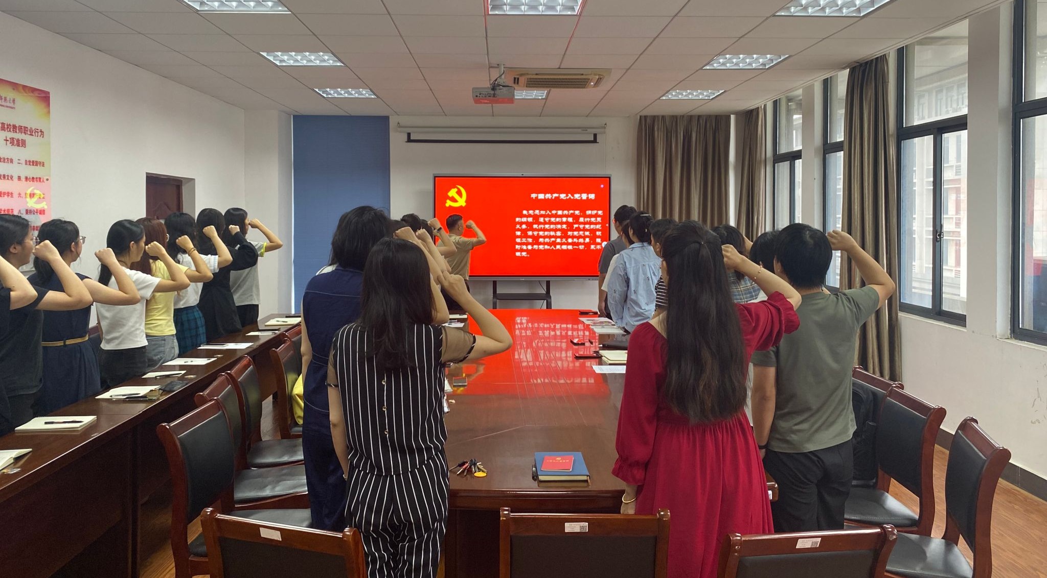 会议还集中收看了学习教育专题视频《八项规定改变中国》,学习了《中国共产党章程》相关内容。最后,全体同志在夏斐带领下,进行了庄严的入党宣誓。(撰稿、摄影:訾纪辉 审核:黄建平)