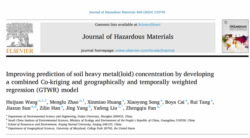 近日,tyc122ccVIP刘亚风副教授以共同通讯作者在环境领域著名期刊《Journal of Hazardous Materials》(中科院JCR分区1区,IF=13.6)上在线发表了关于大规模土壤重金属浓度预测的研究成果。
