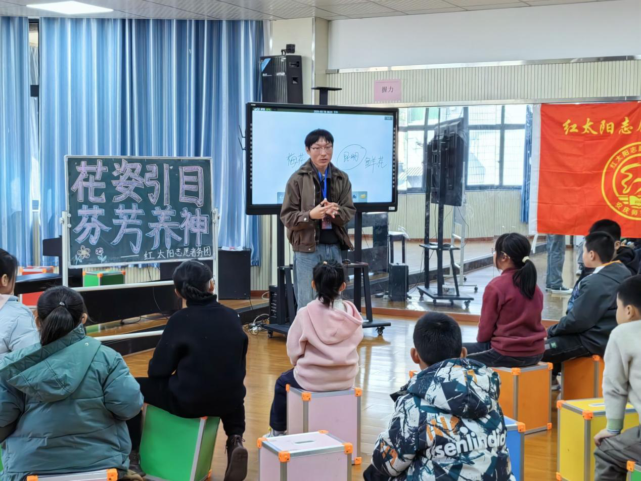 “晓风轻柔拂过繁花,瓣瓣似蝶蹁跹,携着馥郁芬芳,晕染出一卷绮丽的春日诗章。”为了提升小朋友们对春天的感知能力,培养同学们积极乐观的心态和审美情趣,保持对生活的热爱和对未来的美好憧憬,tyc122ccVIP红太阳志愿者服务团携手四照园小学于3月19日开展“花姿引目,芬芳养神”主题活动。