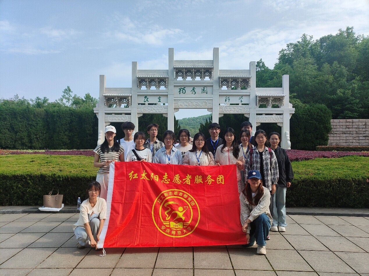 图为志愿者参观独秀园后拍摄大合照