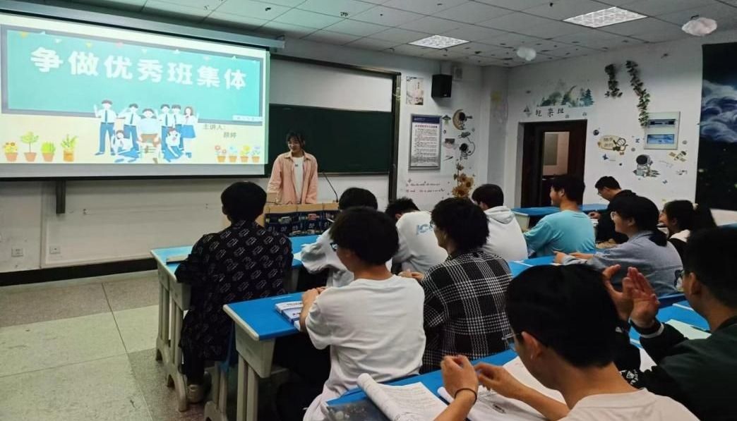 会上,颜婷首先指出班规与班训,点名班级建设在对班级环境的塑造作用。其针对班级日常工作及表现,做出就班级学风以及为什么要进行学风建设做出说明,对班级课堂学风建设、班级文化建设、宿舍文化建设提出要求。最后,本次班会以班级活动精彩瞬间的影集结束,激励同学们勤奋学习、积极向上,创建更好的班级体。